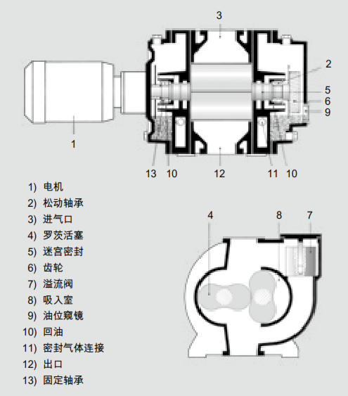 (3)定期檢查羅茨泵的軸承、油封、齒輪等部件,如有損壞應(yīng)予更換。